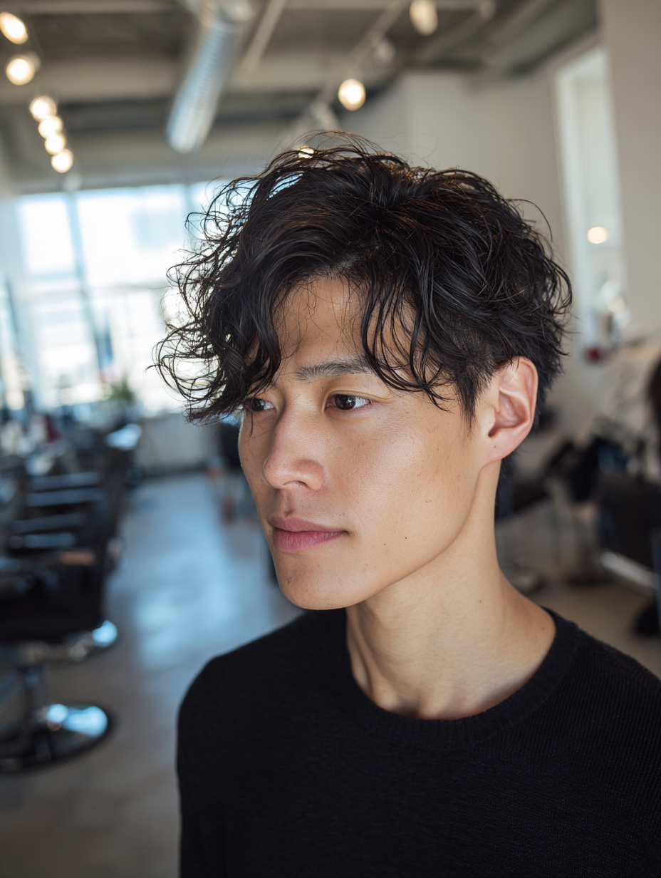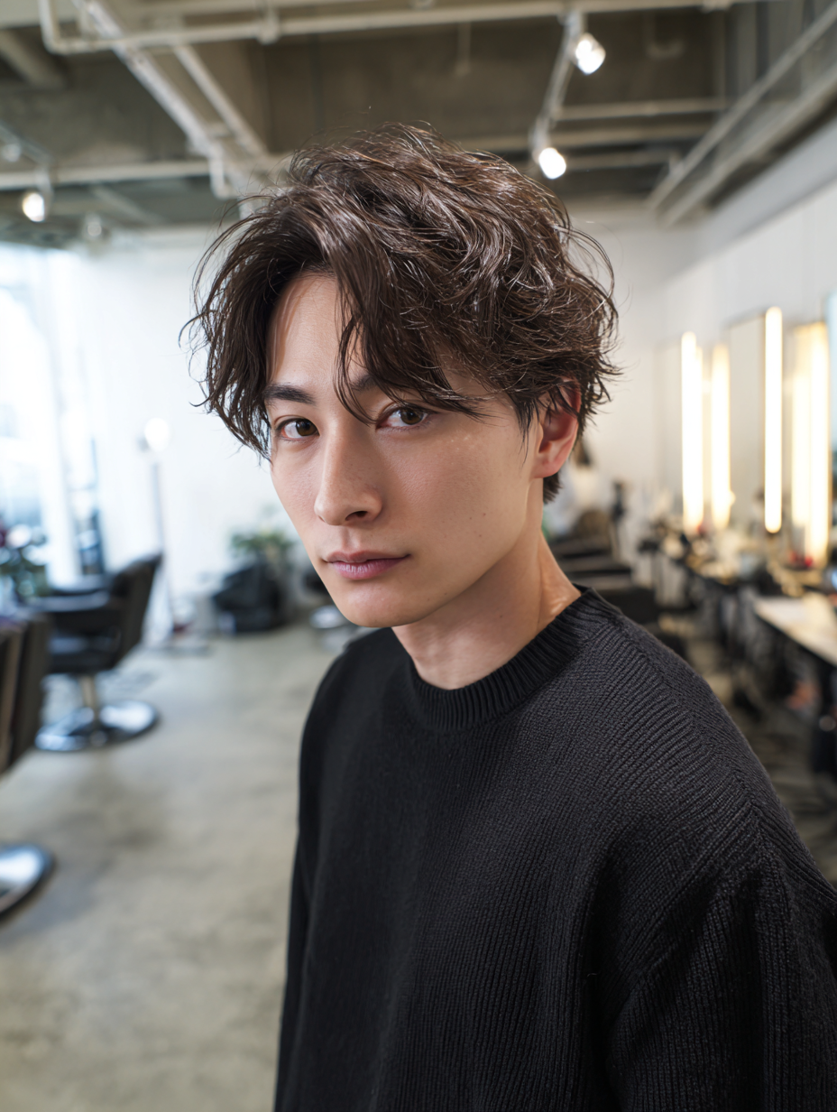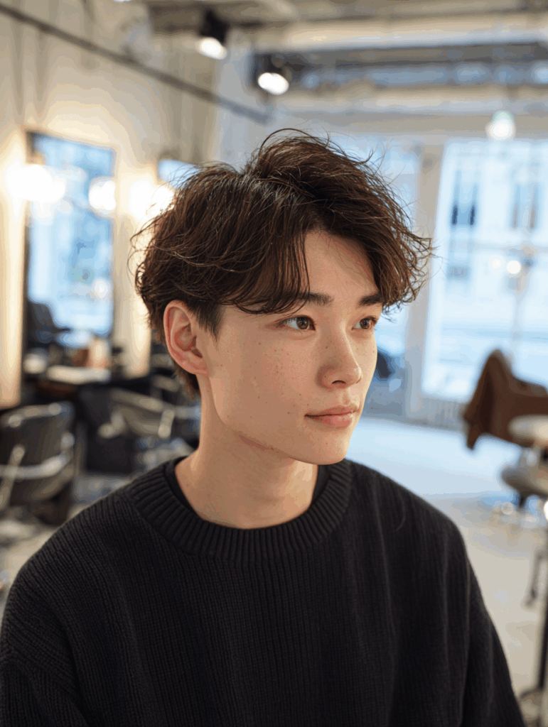 目的(1行):会社で浮かない自然なメンズ パーマ。清潔感最優先、朝は短時間で再現したい。