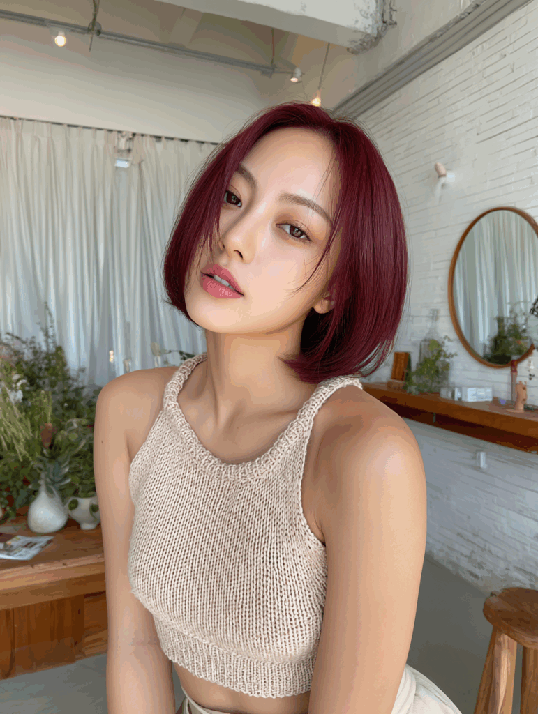 2025年秋冬、数ある赤系カラーの中でも特に支持を集めているのがボルドーです。ボルドーは落ち着いた深みのある色味でありながら、艶を強調できる点が大きな魅力。重くなりがちな冬のファッションとも相性抜群で、ヘアカラーに華やかさと高級感を加えてくれます。