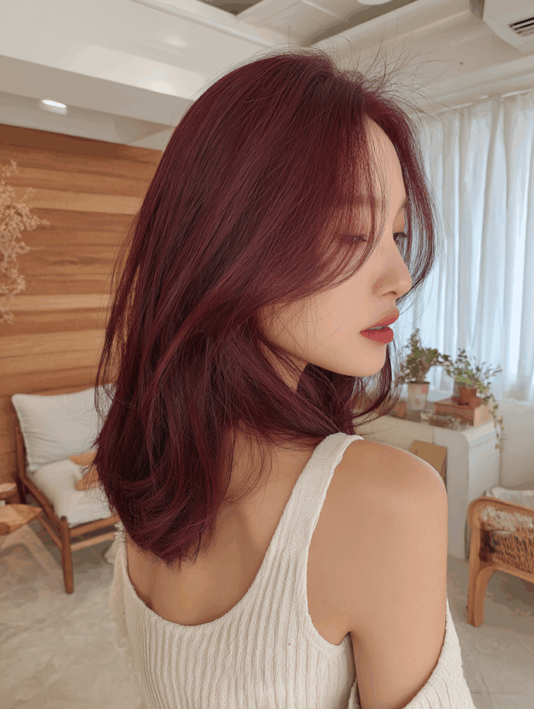レッド系カラーは、肌を明るく血色よく見せ、髪に自然な艶を与える効果があります。そして、その中でもボルドーは秋冬のファッションと抜群の相性を誇り、暗すぎず派手すぎない絶妙なバランスであなたの魅力を引き出してくれます。