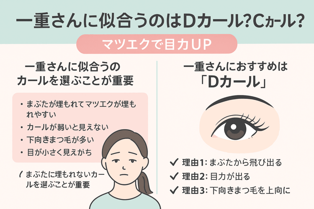 実は、マツエクのカール選びは、仕上がりの印象を大きく左右する最も重要なポイントなんです。この記事では、名古屋でアイラッシュサロンを経営し、年間1000名以上のマツエクを担当してきた現役アイリストが、DカールとCカールの違いと選び方を完全解説します。
