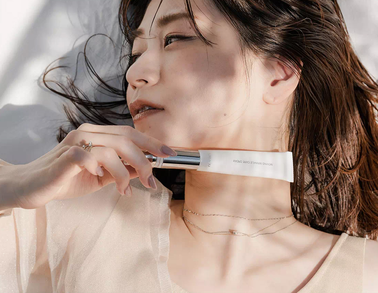 シワの原因と目元のポイントケアに特化した美顔器内蔵型のクリームが年齢や疲れを感じさせるシワを改善し、エイジレスな明るい印象の目元へ導きます。